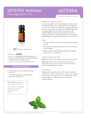 All words with registered trademark symbols are registered trademarks of dōTERRA Holdings, LLC ©2015 dōTERRA Holdings, LLC Motivate PIP US 071917