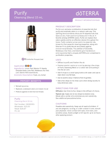 All words with trademark or registered trademark symbols are trademarks or registered trademarks of dōTERRA Holdings, LLC ©2019 dōTERRA Holdings, LLC Purify PIP US 012919