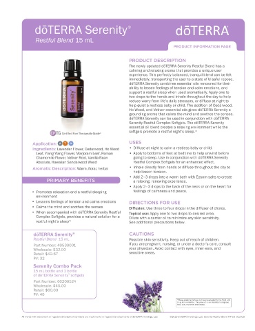 All words with trademark or registered trademark symbols are trademarks or registered trademarks of dōTERRA Holdings, LLC ©2019 dōTERRA Holdings, LLC Serenity Restful Blend PIP US 012419