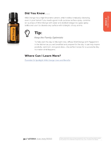 10–15 drops of Wild Orange with water and distilled vinegar in a glass spray Wild Orange