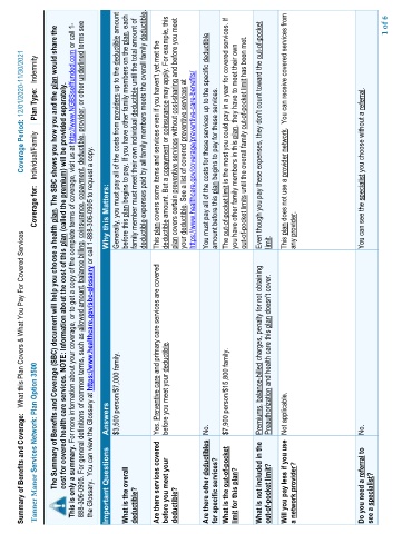 Summary of Benefits and Coverage: Tanner Manor Services Network: Plan Option 3500 This is only a summary. the Glossary. You can view the Glossary at Important Questions What is the overall GHGXFWLEOH? Are there services covered before you meet your GHGXFWLEOH? GHGXFWLEOHV Are there other for specific services? RXW RI SRFNHW What is the SODQ? OLPLW for this What is not included in the RXW RI SRFNHW OLPLW? Will you pay less if you use QHWZRUN SURYLGHU? a UHI