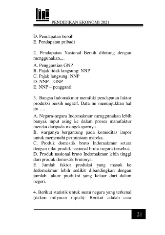 2.  Pendapatan  Nasional  Bersih  dihitung  dengan