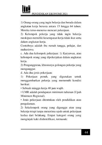 c. Ada dua kelompok pekerjaan: 1) Karyawan, atau