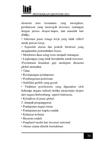 • Lingkungan yang tidak bersahabat untuk investasi.
