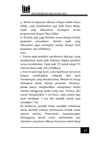 g. Sistem kompensasi dikenal sebagai indeks biaya