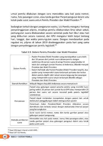 Tabel 3.9. Sistem Pemilu Presiden dan Wakil Presiden