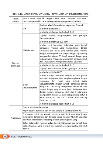 Tabel 3.10. Sistem Pemilu DPR, DPRD Provinsi, dan DPRD Kabupaten/Kota