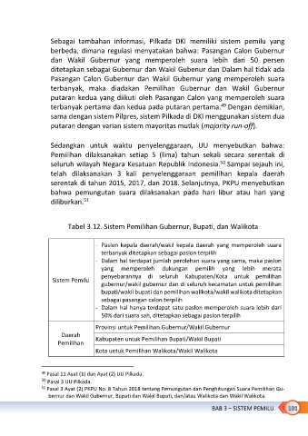 Tabel 3.12. Sistem Pemilihan Gubernur, Bupati, dan Walikota