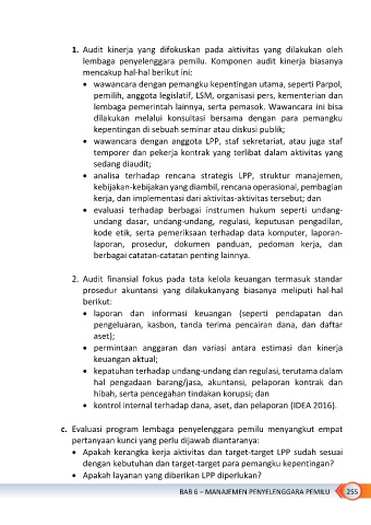 lembaga penyelenggara pemilu. Komponen audit kinerja biasanya