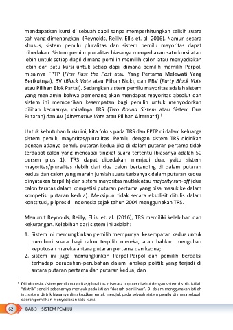 1 Di Indonesia, sistem pemilu mayoritas/pluralitas ini secara populer disebut dengan sistem distrik. Istilah