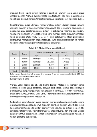 Tabel 3.2. Alokasi Kursi Versi D’Hondt