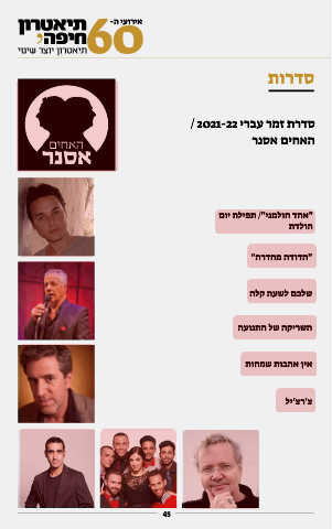 אירועי ה60- סדרות סדרת זמר עברי / 2021-22 האחים אסנר "אחד חולמני" /תפילת יום הולדת "הדודה מחדרה" שלכם לשעה קלה השריקה של התנועה אין אהבות שמחות צ'רצ'יל 45 45