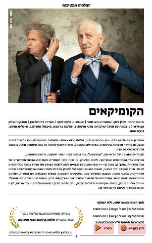 קומדיה מופתית בכיכובם של שני ענקי       | 27/06/2021יום ג'  | 20:30במה ראשית