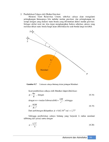 Gambar 8.7 Lintasan cahaya bintang dekat piringan Matahari.