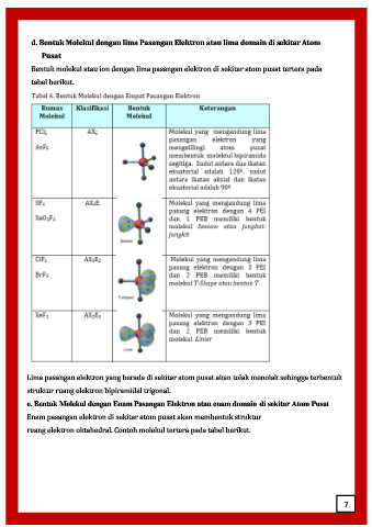 d. Bentuk Molekul dengan lima Pasangan Elektron atau lima domain di sekitar Atom