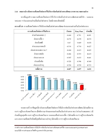 4.631 อยู่ในระดับพอใจมาก เมอพิจารณาจ าแนกตามดานเก็บเงนค่าผ่านทาง พบว่าดานก าแพงเพชร 2 มี