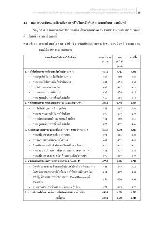 ตารางที่ 15 ความพึงพอใจต่อการให้บรการจัดเก็บค่าผ่านทางพิเศษ ดานฉมพล จ าแนกตาม
