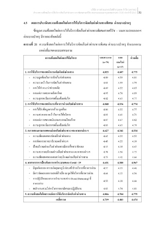 ตารางที่ 21 ความพึงพอใจต่อการให้บรการจัดเก็บค่าผ่านทางพิเศษ ดานบางบ าหร จ าแนกตาม