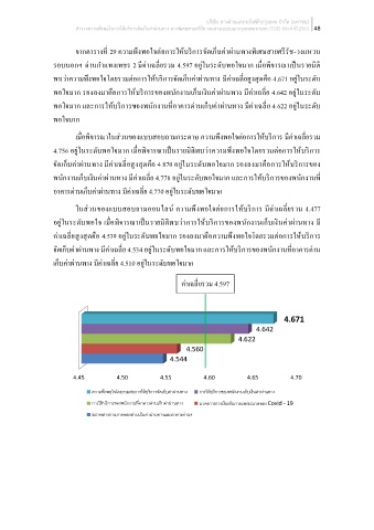 พบว่าความพึงพอใจโดยรวมต่อการให้บรการจัดเก็บค่าผ่านทาง มค่าเฉลยสงสดคือ 4.671 อยู่ในระดับ