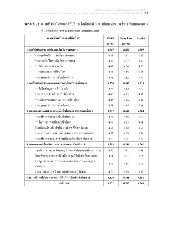 ตารางที่ 32 ความพึงพอใจต่อการให้บรการจัดเก็บค่าผ่านทางพิเศษ ดานบางซอ 1 จ าแนกตามการ