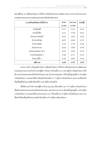 ตารางท 34 ความพึงพอใจต่อการให้บรการจัดเก็บค่าผ่านทางพิเศษ ของการช าระค่าผ่านทางจาก