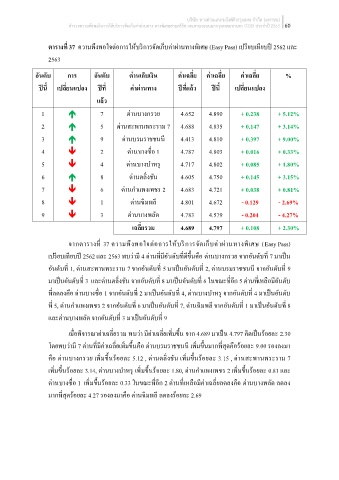 ตารางที่ 37 ความพึงพอใจตอการให้บรการจัดเก็บค่าผ่านทางพิเศษ (Easy Pass) เปรยบเทยบป 2562 และ