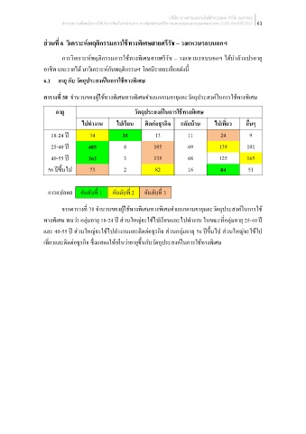 จากตารางท 38 จ านวนของผู้ใช้ทางพิเศษทางพิเศษจ าแนกตามอายุและวัตถุประสงค์ในการใช้