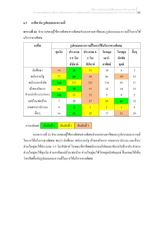 ตารางท 42 จ านวนของผู้ใช้ทางพิเศษทางพิเศษจ าแนกตามอาชพและรปแบบและความถในการใช้