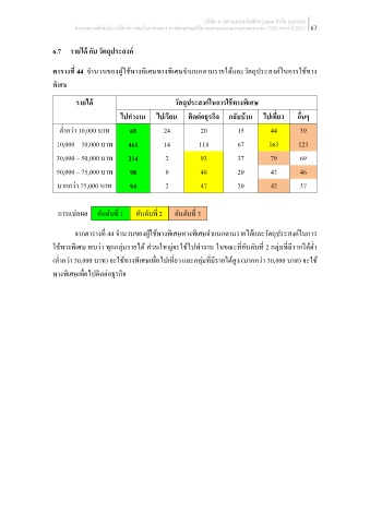 ตารางท 44 จ านวนของผู้ใช้ทางพิเศษทางพิเศษจ าแนกตามรายได้และวัตถุประสงค์ในการใช้ทาง