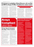 “We at CSI are pleased to o er our Avaya business partners enhanced IP O ce Version 10 integration for our agship WFO solution, Virtual Observer (VO). Our new recording method has been developed with customer value in mind, providing an a ordable licensing model and an extremely robust WFO feature set which has never previously been available for IP O ce customers,” added Rich Marcia, Marketing Director for CSI.