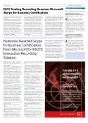 Boca Raton, Fla., - Numonix has announced it has been awarded Skype® for Business interoperability certi cation by Microso for its RECITE® Interaction Recording Solution. e RECITE interaction recording solution delivers comprehensive, compliant recording of all Skype for Business interactions on-premises, hybrid cloud and in Microso O ce 365.