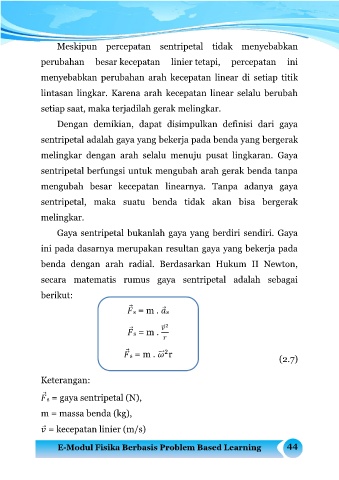 sentripetal, maka suatu benda tidak akan bisa bergerak