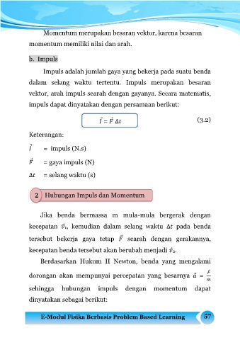 vektor, arah impuls searah dengan gayanya. Secara matematis,