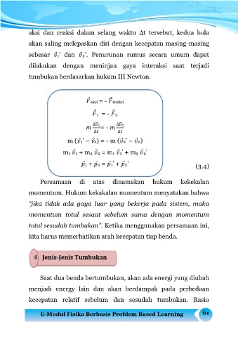 total sesudah tumbukan”. Ketika menggunakan persamaan ini,