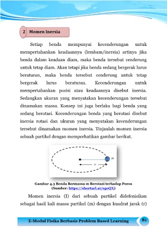 tersebut dinamakan momen inersia. Tinjaulah momen inersia
