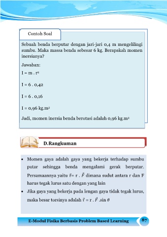 Jadi, momen inersia benda berotasi adalah 0,96 kg.m