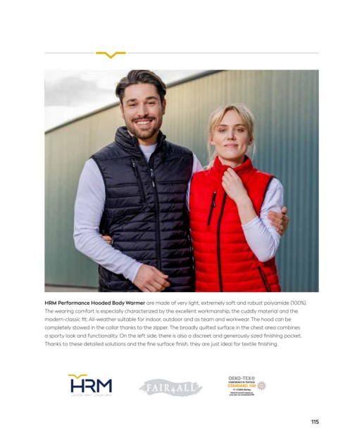 BODY WARMER HRM Performance Hooded Body Warmer are made of very light, extremely soft and robust polyamide (100%).