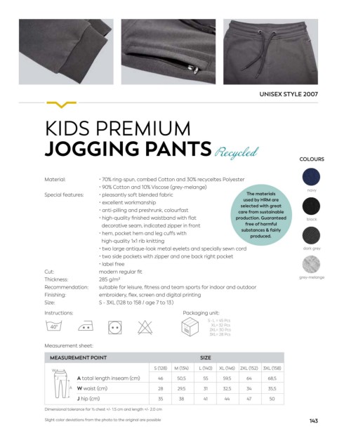 5000 mm recycling cotton Size: S - 3XL (128 to 158 / age 7 to 13 )