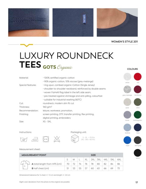 S XS Special features: • ring-spun, combed organic-Cotton (Single Jersey)