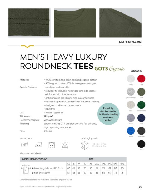 6XL 5XL 3XL • 90% organic cotton, 10% viscose (grey-melange) white red