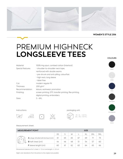 S XS 5000 mm recycling cotton WOMEN’S STYLE 206