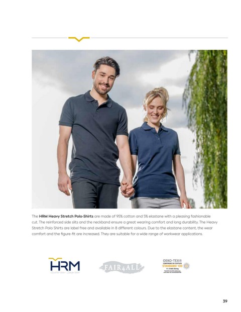 STRETCH The HRM Heavy Stretch Polo-Shirts are made of 95% cotton and 5% elastane with a pleasing fashionable