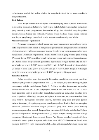 persamaan trigonometri dan tingkat siswanya; (2) Herjan Haryadi tentang efektifitas strategi