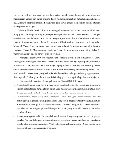 Menurut Slavin (2008:218) dalam investigasi kelompok para siswa bekerja melalui enam