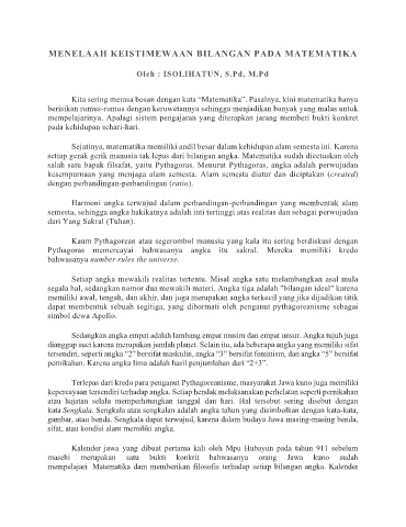mempelajari Matematika dam memberikan filosofis terhadap setiap bilangan angka. Kalender