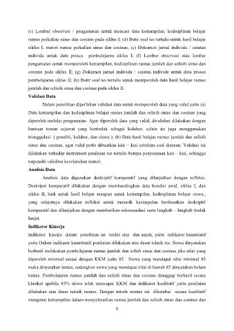 rumus perkalian sinus dan cosinus pada siklus I; (d) Butir soal tes tertulis untuk hasil belajar