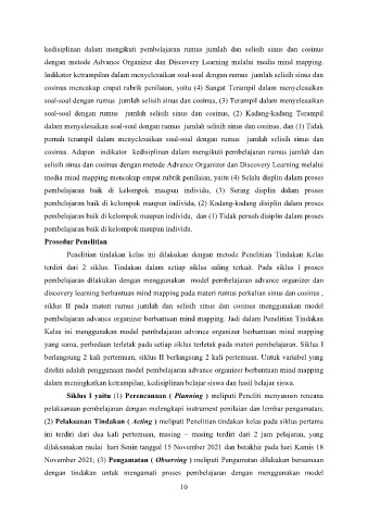 cosinus. Adapun indikator kedisiplinan dalam mengikuti pembelajaran rumus jumlah dan