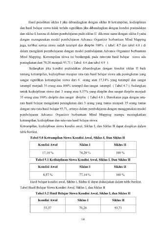 dan hasil belajar siswa tidak terlalu signifikan jika dibandingkan dengan kondisi pratindakan