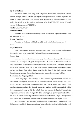 tindakan sebagai berikut: “Melalui penerapan model pembelajaran advance organizer dan