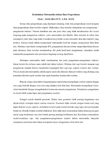 model-modelnya saja. Jadi pengalaman-pengalaman empiris dalam matematika hanyalah